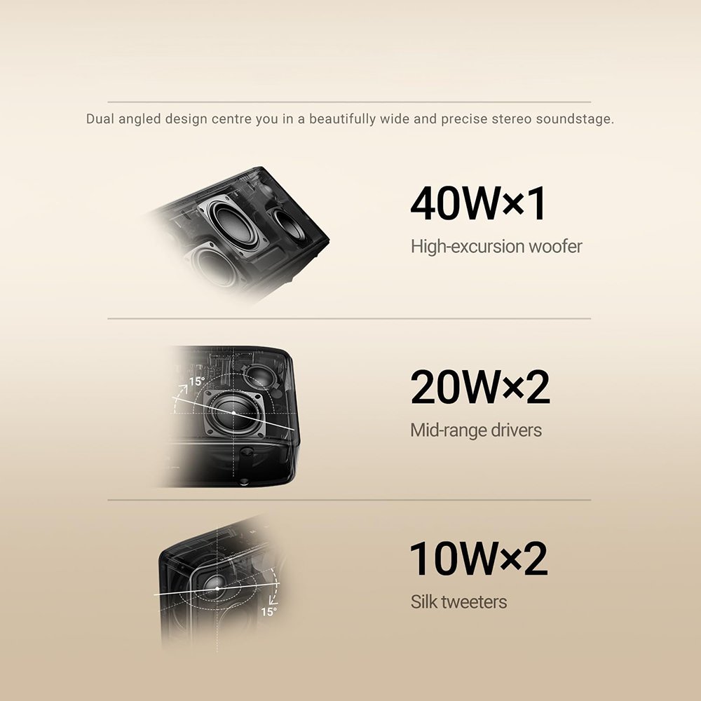 • Breakthrough Acoustic Architecture: Experience music like never before with our Bluetooth Speaker, featuring five precisely engineered drivers and two passive radiators. The dual-angled design creates a wide and open soundstage, rendering every beat with dramatic clarity, detail, and depth. Immerse yourself in an audio landscape that enhances every listening experience.