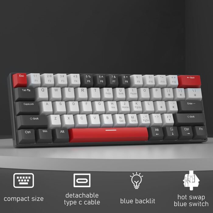 ✅ [ 61 Keys Compact with Blue LED Backlit ] Small size with 61 keys, save more space for your desk. And this mini gaming keyboard have 19 blue LED light effects to choose
